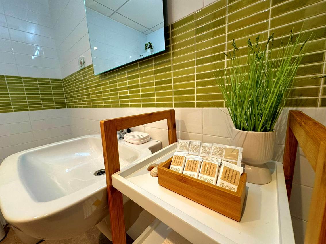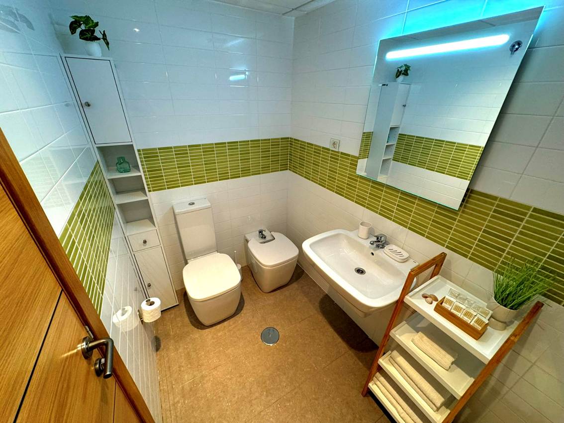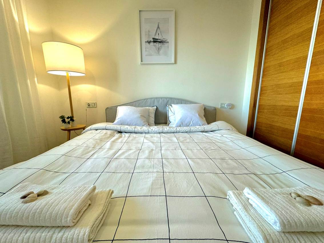 65 m2 for 1-6 Guests, living room with a sofa-bed, bedroom with a double bed, bedroom with 2 single beds, 2 bathrooms, kitchen, balcony, air condition