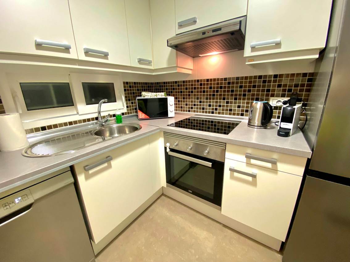 45 m2 for 1-4 Guests, living room with a sofa-bed, bedroom with a double bed, bathroom, kitchen, balcony, air condition