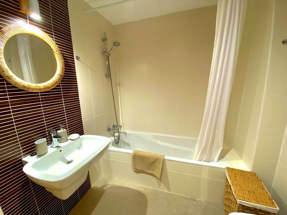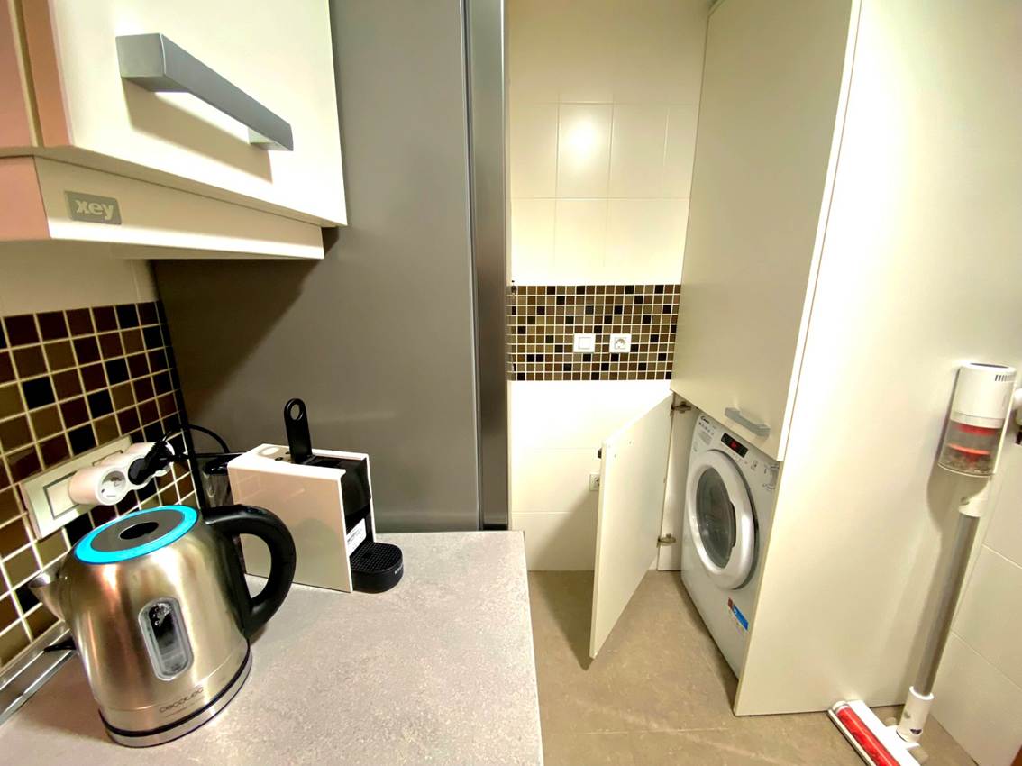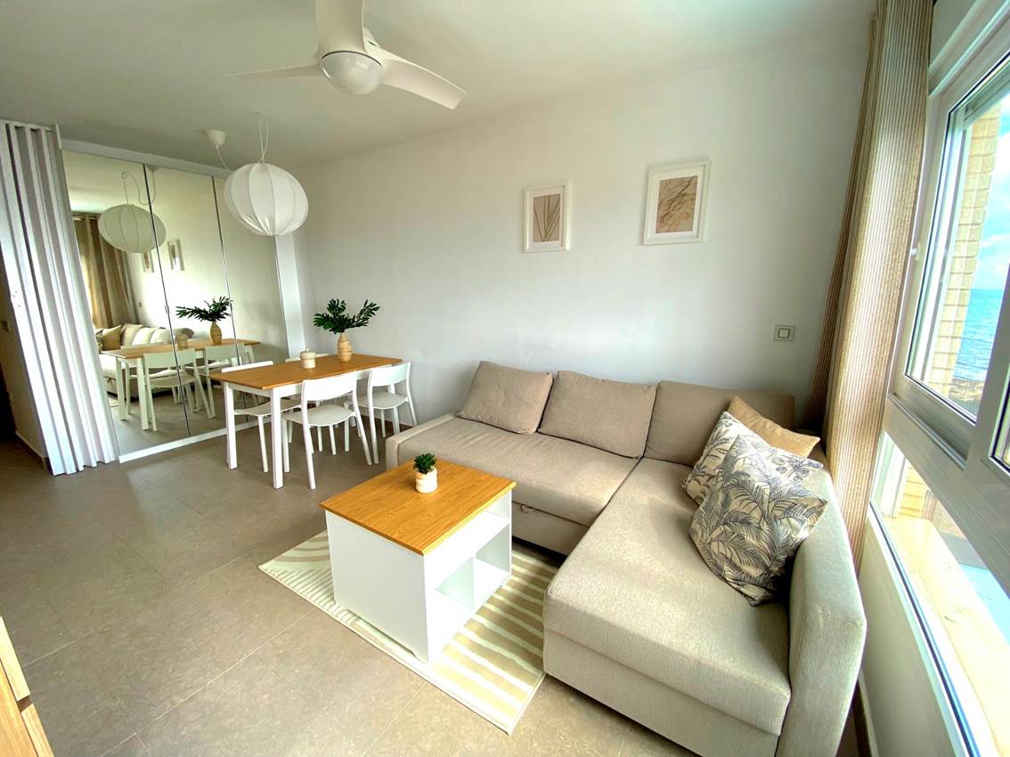 45 m2 para 1-4 Huéspedes, salón con sofa cama, dormitorio con cama doble, baño, cocina, balcón, climatización